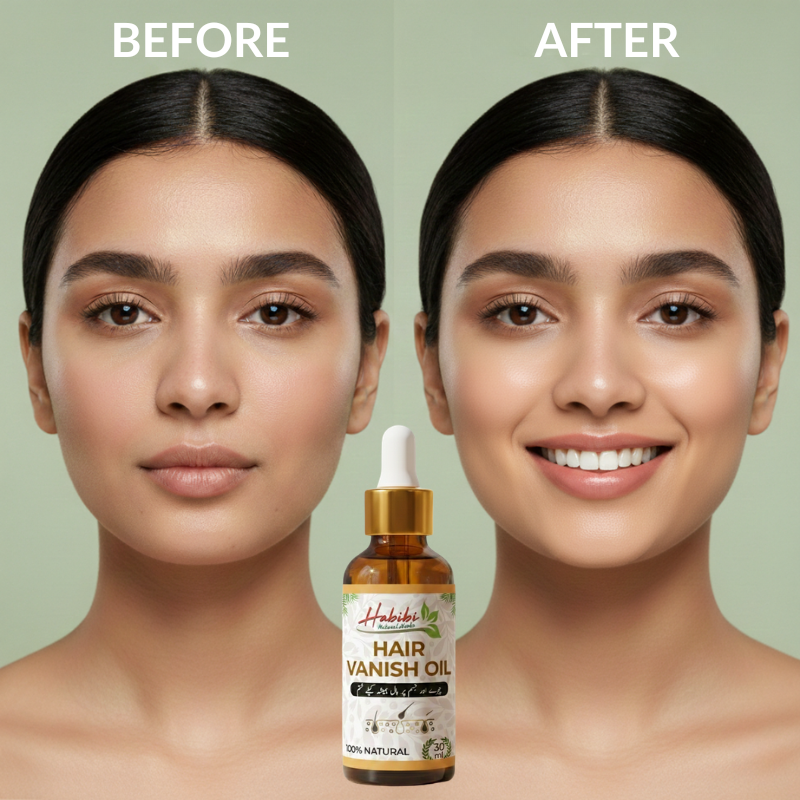 Hair Vanish Oil is a natural herbal hair reduction oil specially formulated to help reduce unwanted facial and body hair while slowing down hair growth over time. This gentle yet effective oil works by weakening hair roots, making hair thinner, lighter, and less visible with regular use.